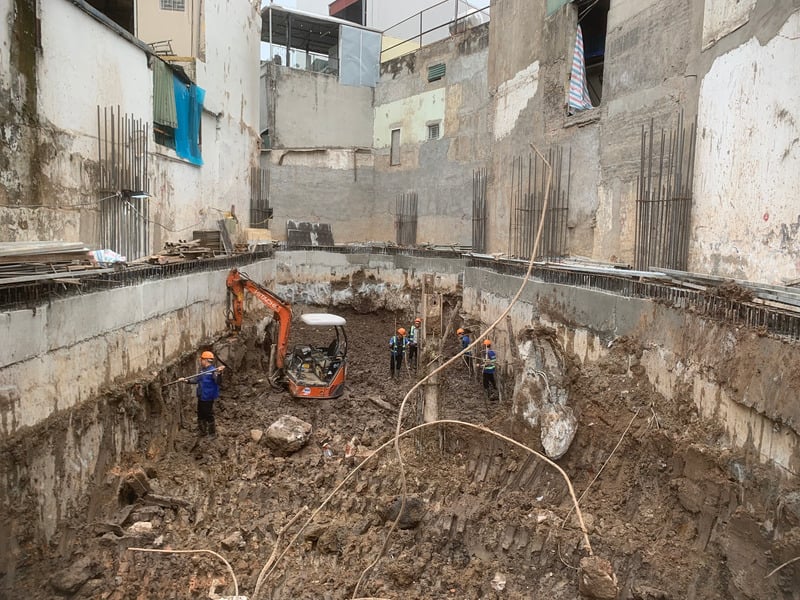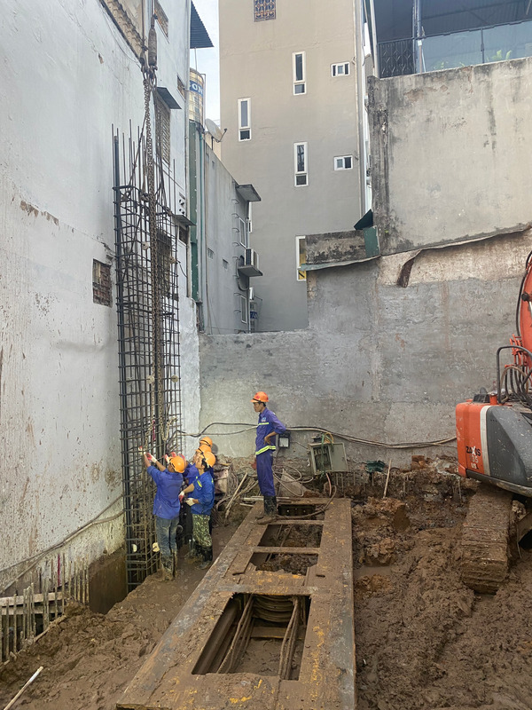 Thi công tường dẫn, tường barret + kết hợp hệ văng chống